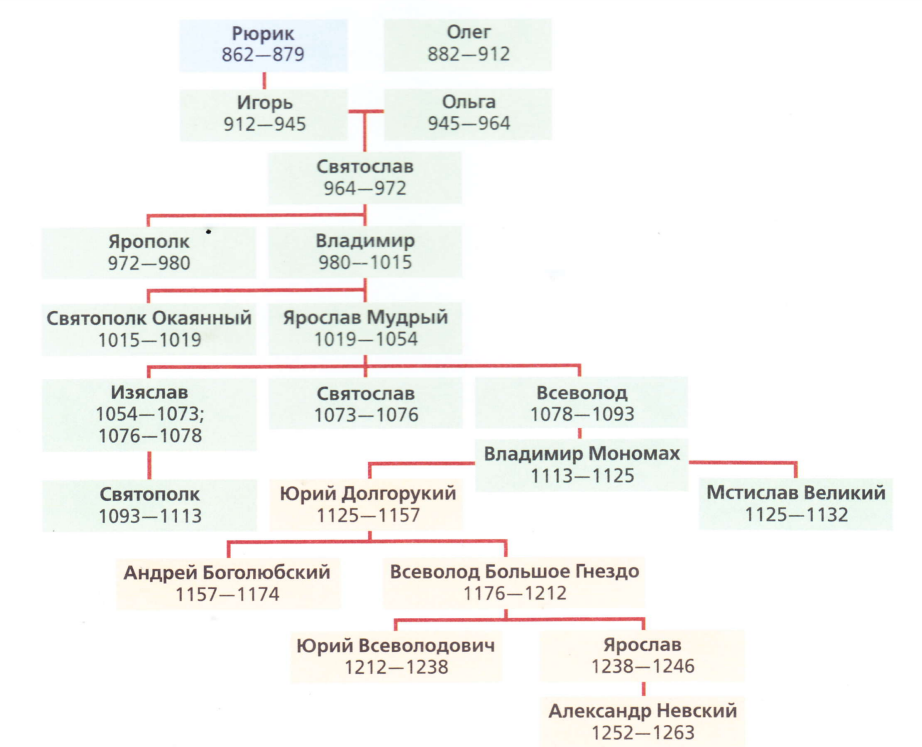 Ниже найдешь все даты этого периода, древо Рюриковичей и термины