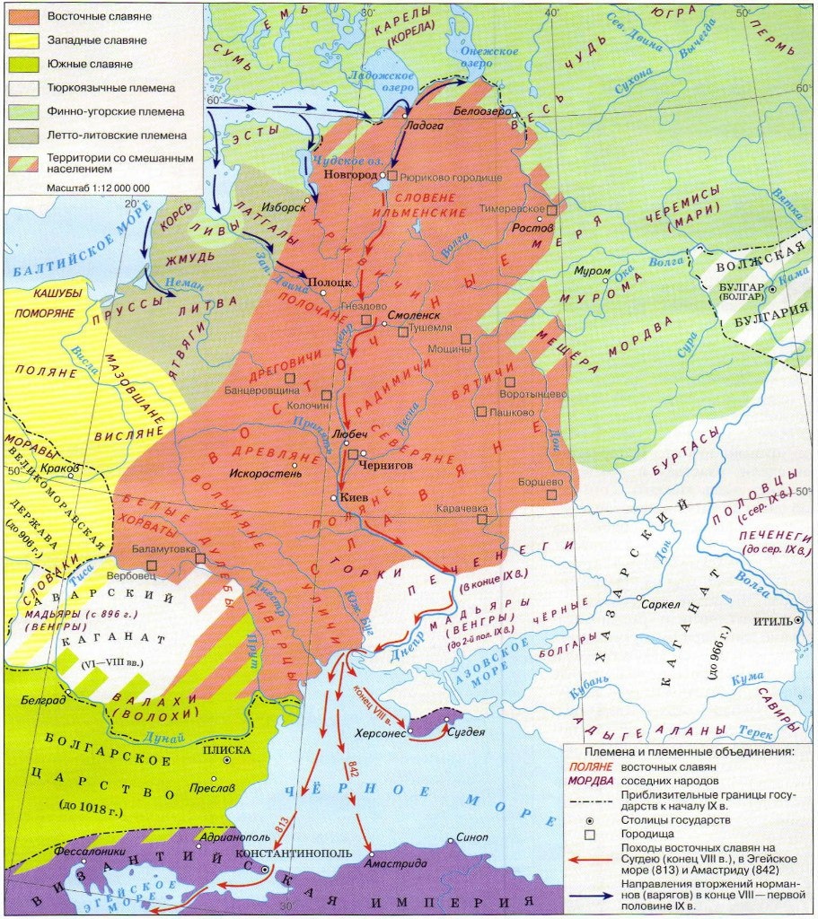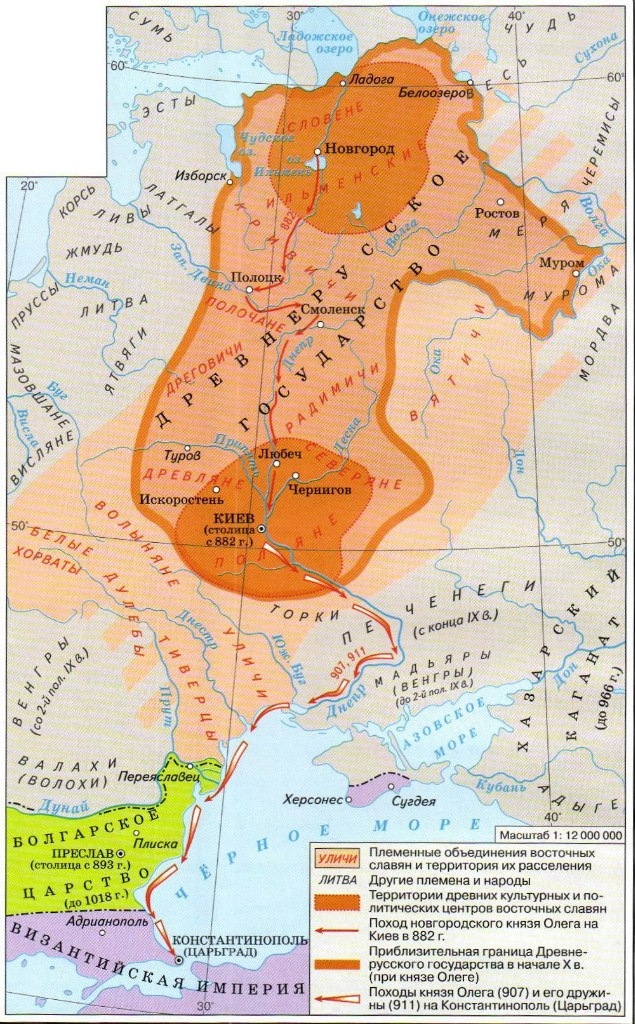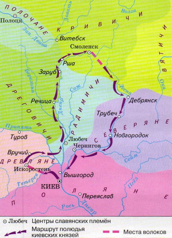 Путь «из варяг в греки» связал между собой почти все племена (путь нужно было охранять, поэтому возникала система договоренностей – предпосылка объединения