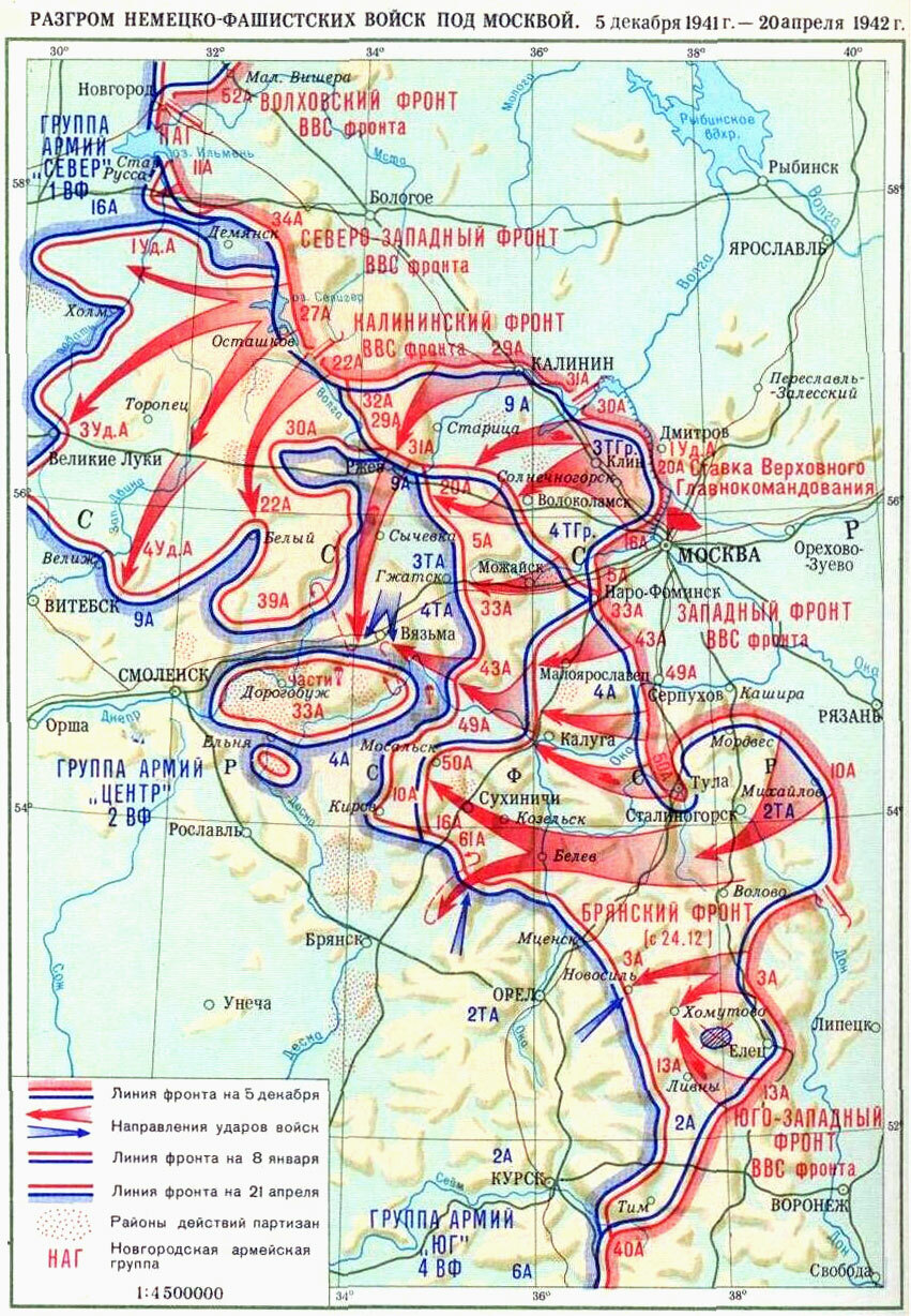 начало контрнаступления Красной Армии: войска Западного фронта (генерал Г.К. Жуков), Калининского фронта (генерал И.С. Конев) и правого крыла Юго-Западного фронта (маршал С.К. Тимошенко)